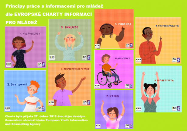 Třetím principem Evropské charty informací pro mládež je INKLUZE. Co to znamená? V Informačních centrech pro mládež jsou dostupné informace všem mladým lidem bez jakékoliv formy diskriminace. Informační služby pro mládež jsou zdarma. Informační centra a služby pro mládež usilují o oslovení všech mladých lidí způsobem, který je účinný a vhodný pro různé […]
