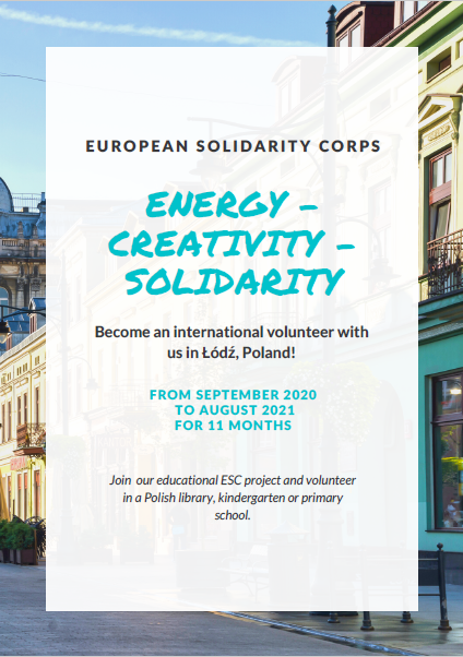 Polská organizace 3 Piętra z města Łódź nabízí dobrovolnická místa na projektu „Energy, creativity, solidarity“. Začátek může být od září do listopadu a potrvá následujícíh 11 měsíců. Jedná se o dobrovolnickou práci s dětmi na základní škole nebo v mateřské škole, anebo v knihovně a je určena pro zájemce od 18 do 30 let.